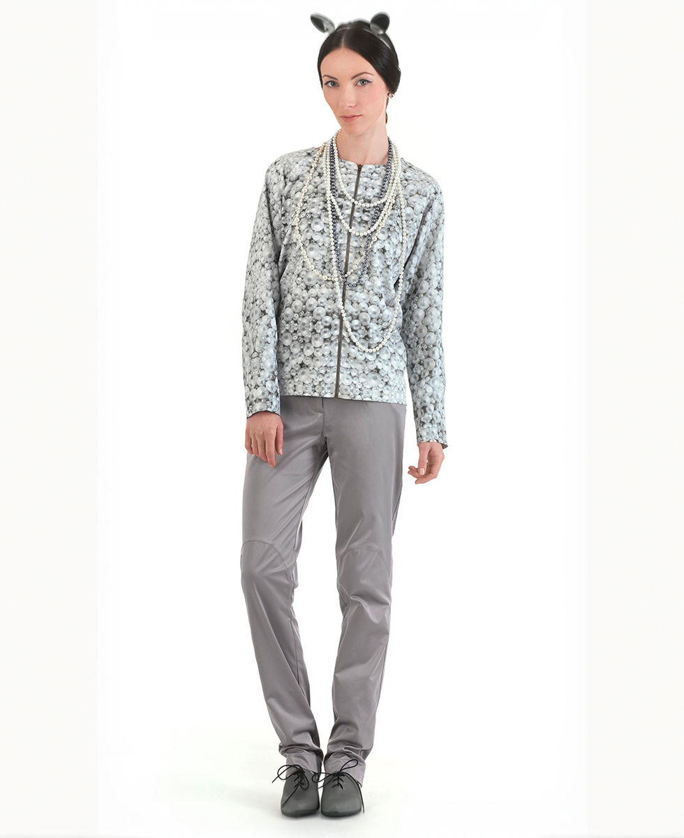 The Bomber Jacket Pearls turns classic glamour into digital poetry. Thousands of printed pearls shimmer across a fabric, redefining the idea of opulence: no weight, no fragility — only lightness and wit.